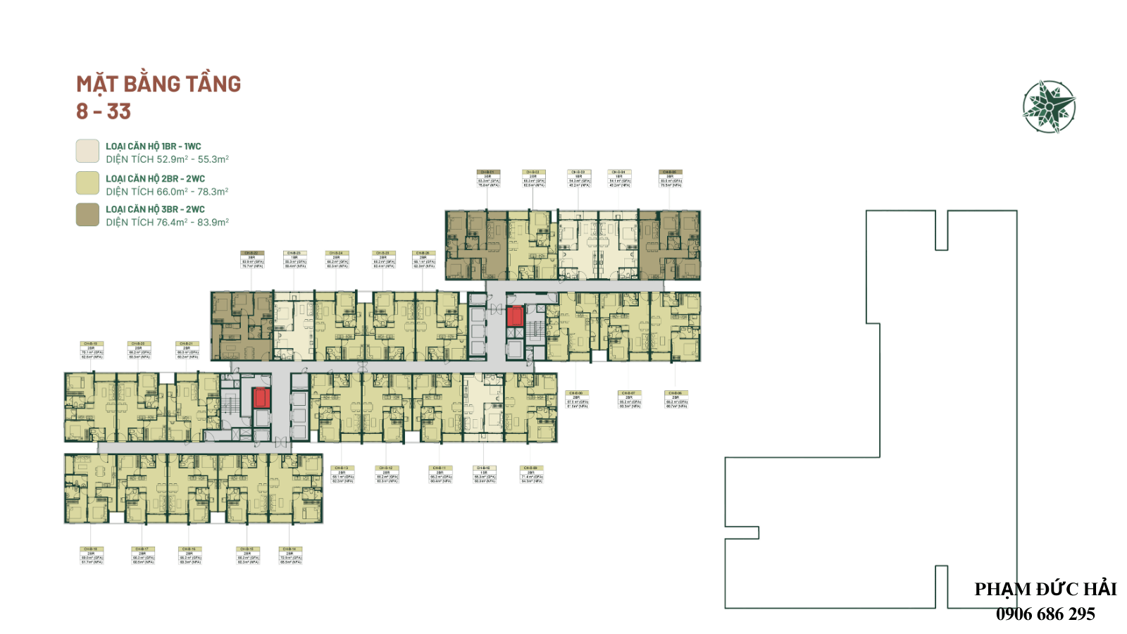 10.581,6 m2 2 Tháp – 33 Tầng nổi – 2 Tầng hầm Tháp Mizu 596 Sản phẩm – Tháp Tochi 845 Sản phẩm |